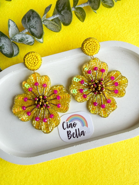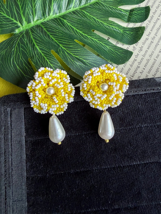 Sunny Glow Yellow Flower Handmade Beaded Earrings