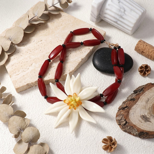 Sweet Flower Resin Red Handmade Beaded Necklace