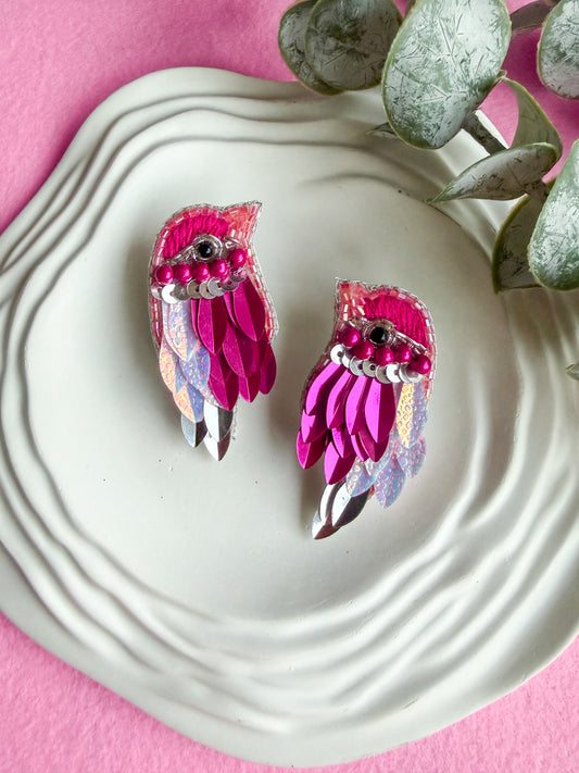 Chirpy Blush Pink Parrot Handmade Beaded Bird Earrings