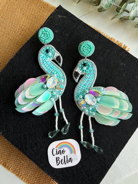Flamazing Flamingo Ocean Teal Handmade Beaded Bird Earrings