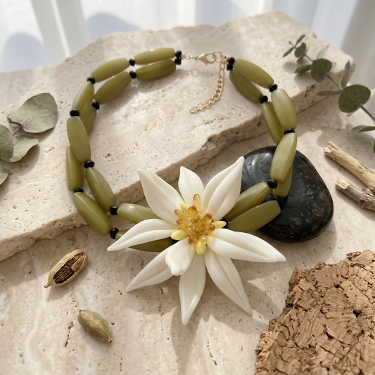 Sweet Flower Resin Green Handmade Beaded Necklace