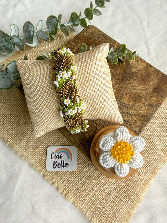Luxe Flora Antique Brown Gold Handmade Beaded Bracelet + Ring Combo