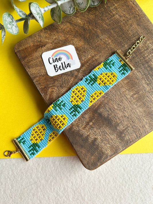 Spring Bloom Blue Daisy Handmade Beaded Bracelet