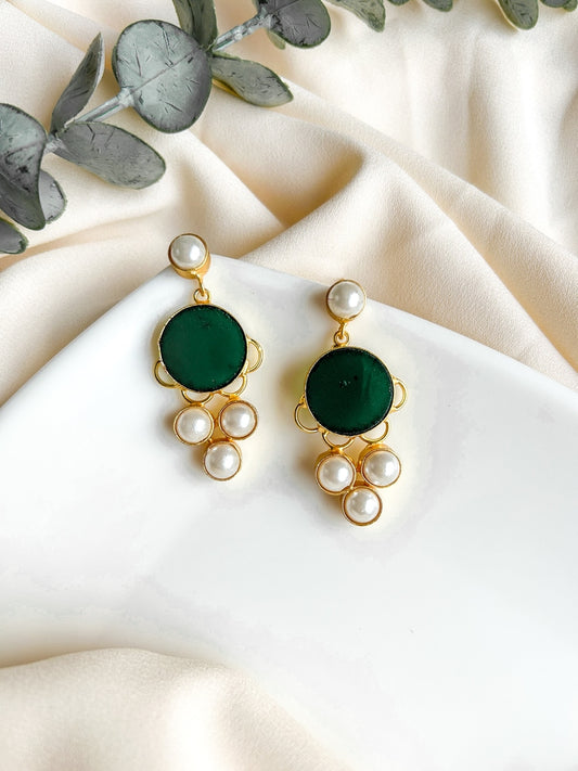 Deep Red Monalisa Teardrop Handmade Brass Earrings