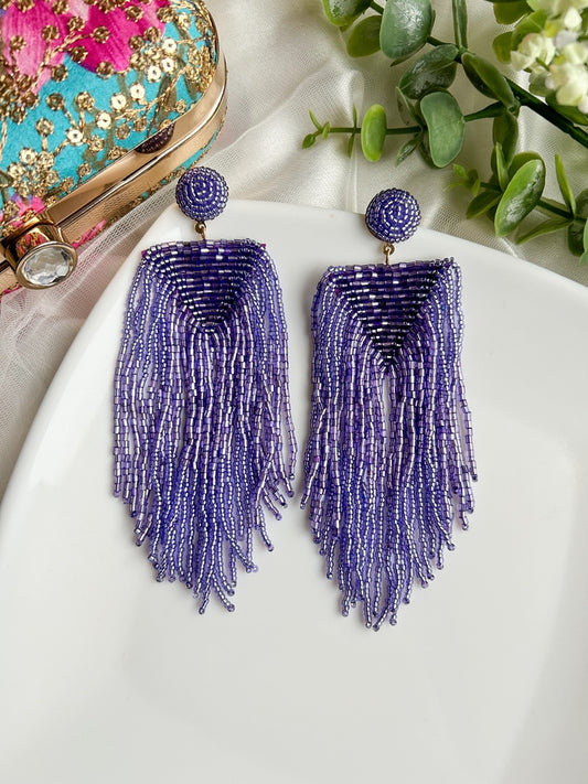 Luxe Lavender Handmade Beaded Tassel Earrings