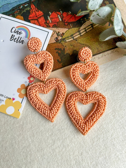 Rainbow Confetti Handmade Beaded Heart Shape Earrings