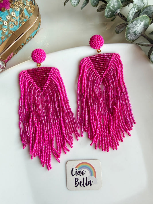 Luxe Rosey Pink Handmade Beaded Tassel Earrings