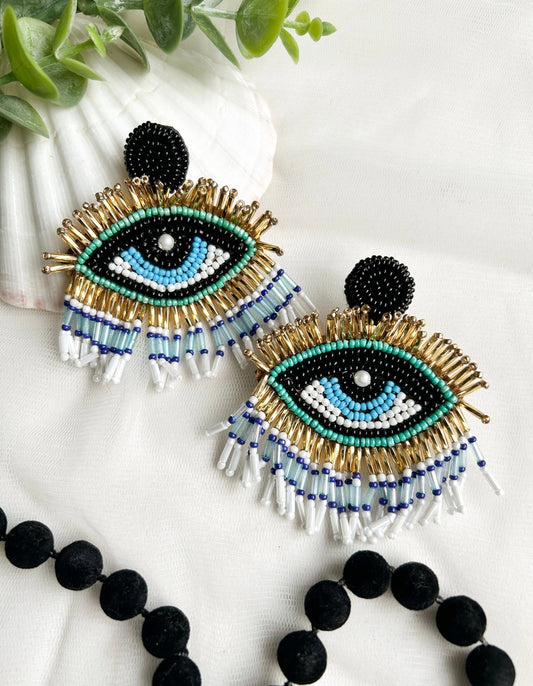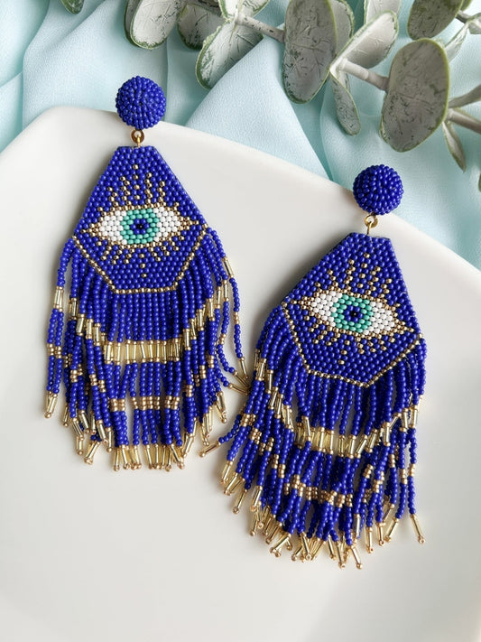 Mystic Evil Eye Tassel Handmade Beaded Earrings