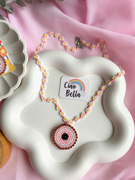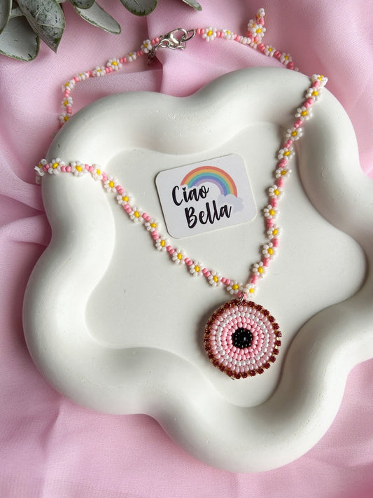 Blush Pink Evil Eye Handmade Beaded Necklace