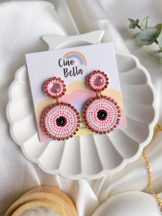 Blush Pink Mini Evil Eye Handmade Beaded Earrings