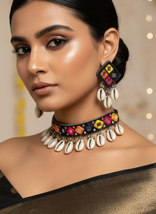 Naaz Mirror Handmade Beaded Necklace & Earrings Set