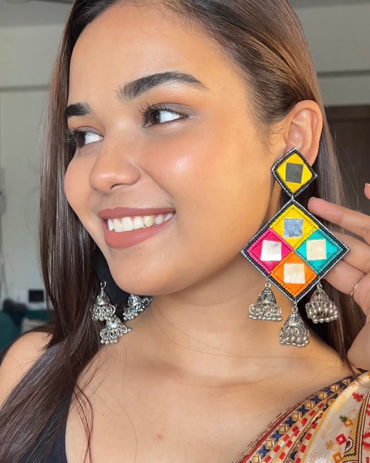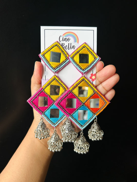Rangrez Mirror Handmade Beaded Jhumka Earrings