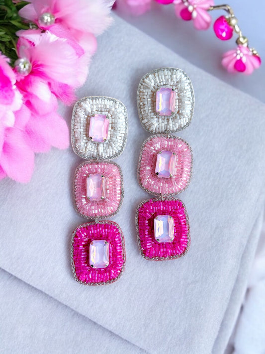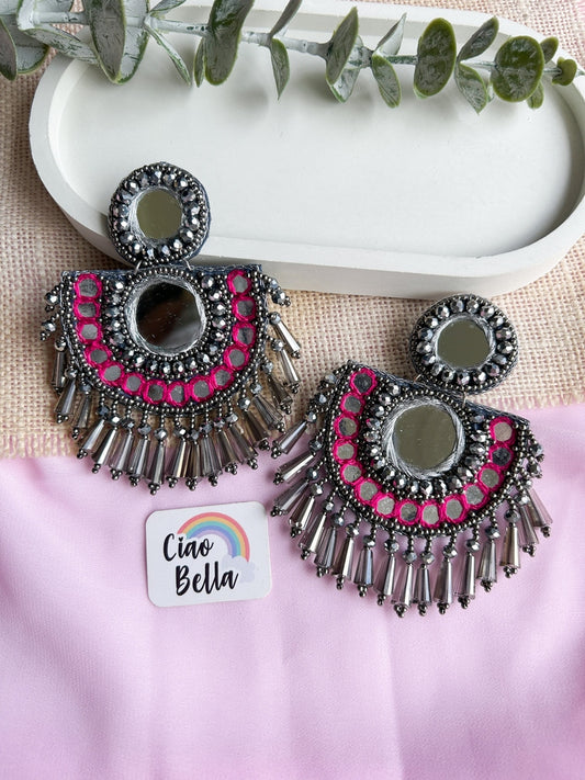 Chandrika Mirror Pink Handmade Beaded Earrings