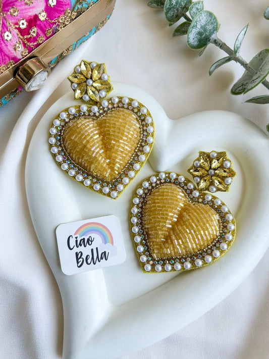 Ishqiya Yellow Heart Drop Handmade Beaded Earrings
