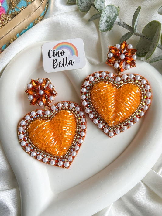 Ishqiya Orange Heart Drop Handmade Beaded Earrings