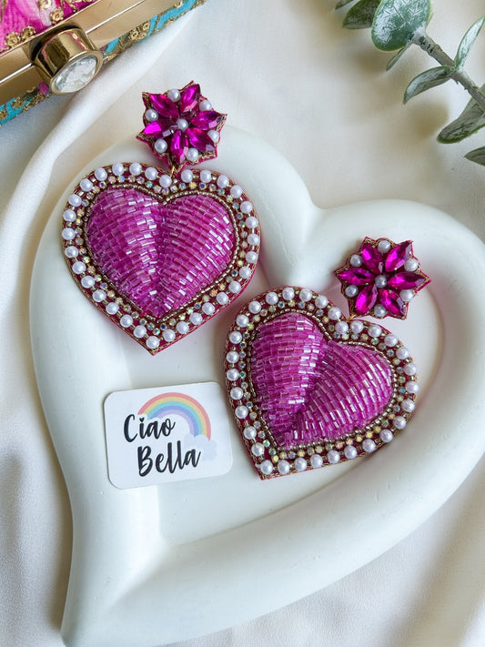 Ishqiya Pink Heart Drop Handmade Beaded Earrings