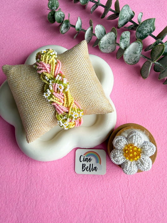 Luxe Flora Pink Yellow Handmade Beaded Bracelet
