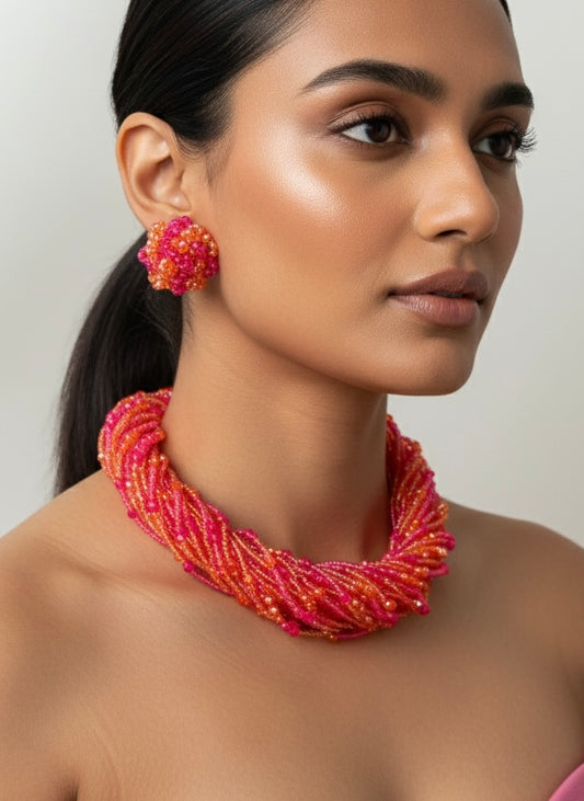 Rangrez Mirror Handmade Beaded Necklace & Earrings Set