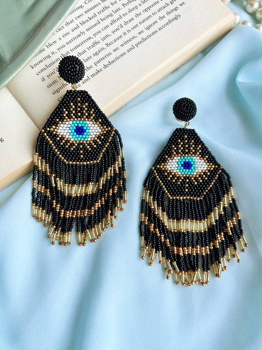 Nazarbattu Evil Eye Handmade Beaded Tassel Earrings