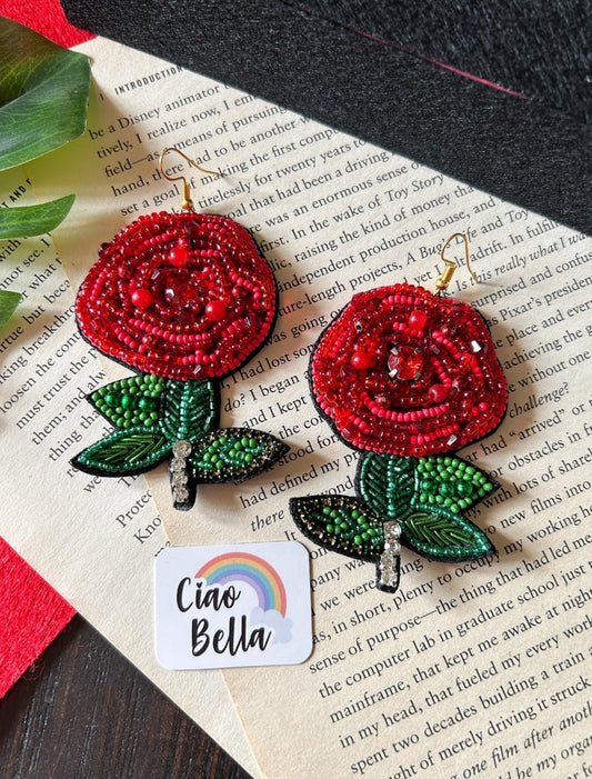 Rosabelle Handmade Beaded Rose Flower Earrings