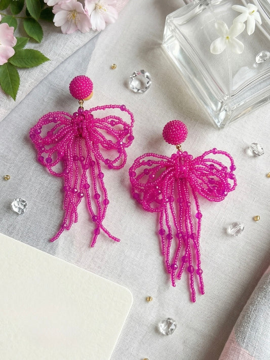 Pookie Bow (Pink) Handmade Beaded Earrings