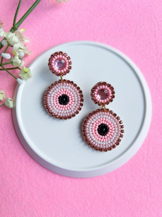 Blush Pink Mini Evil Eye Handmade Beaded Earrings