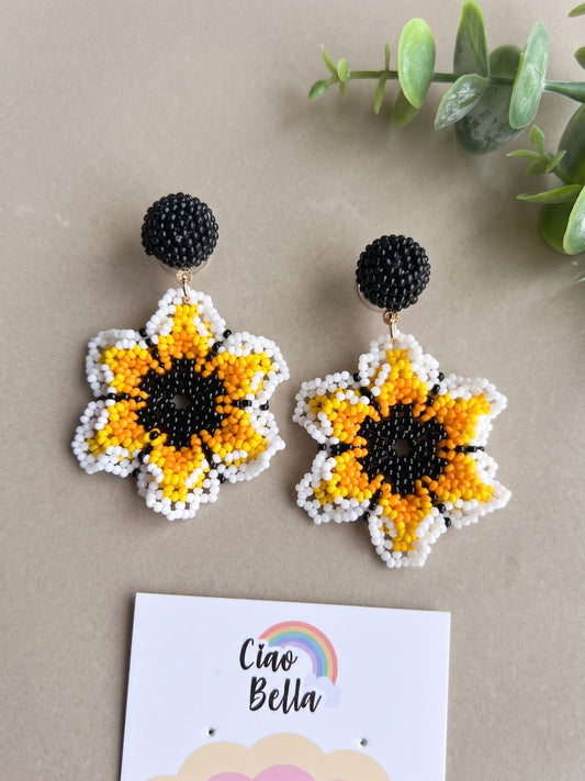 Sun-Kissed Yellow Flower Handmade Beaded Earrings