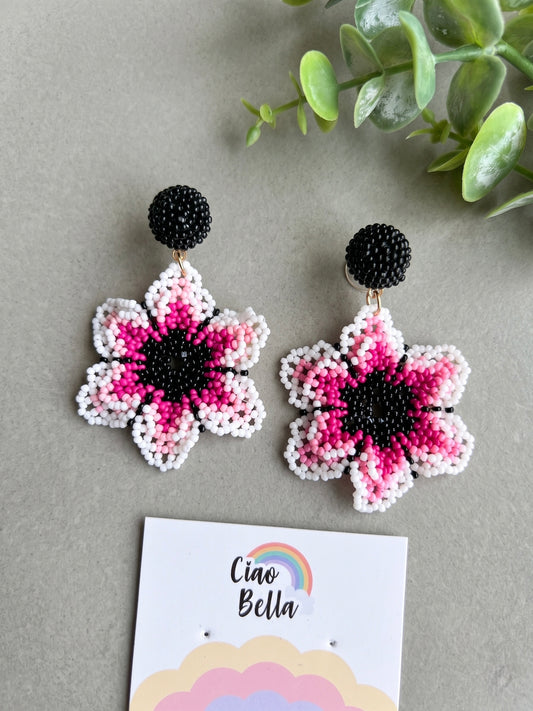 Timeless Black Monochrome Drop Handmade Beaded Earrings