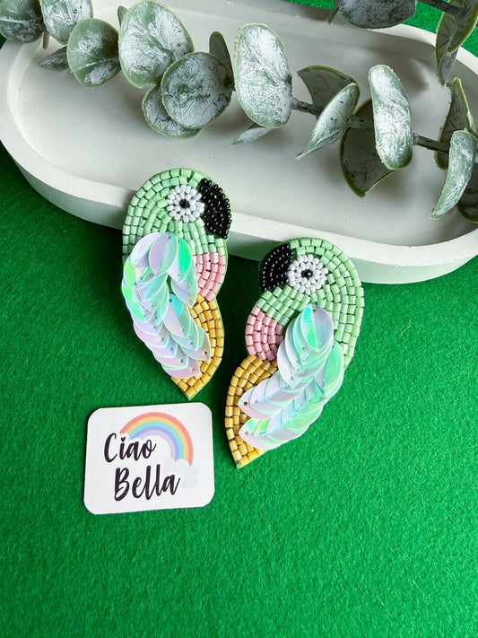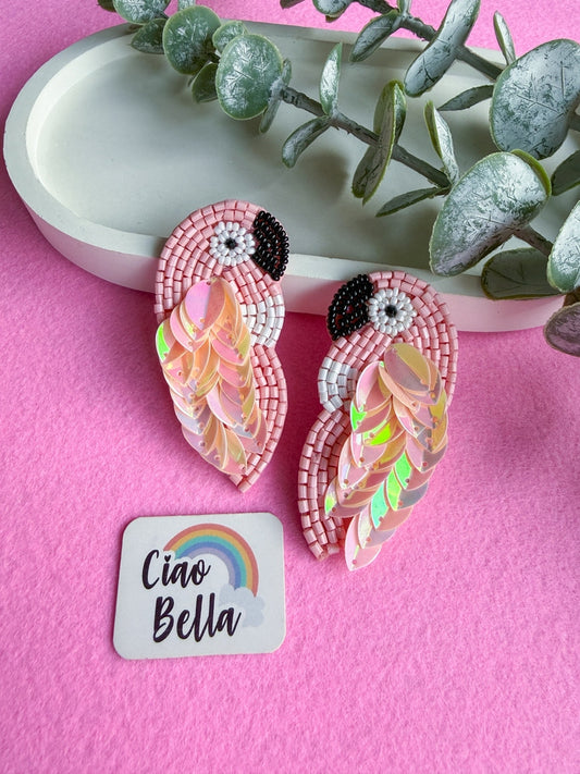 Blush Pink Parrot Handmade Beaded Bird Earrings