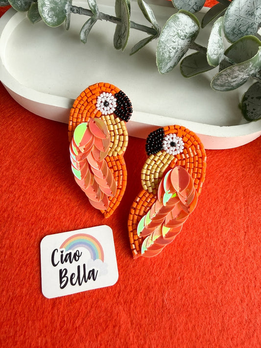 Chandrika Mirror Orange Handmade Beaded Earrings