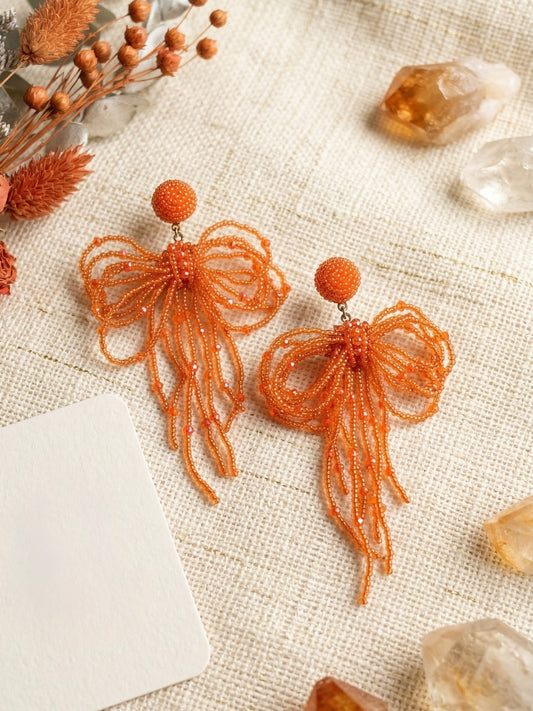 Pookie Bow (Orange) Handmade Beaded Earrings