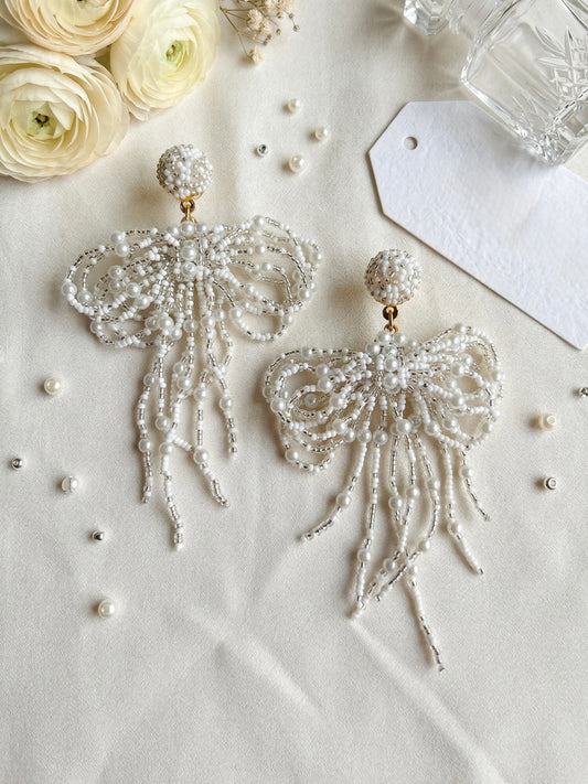 Pookie Bow (White) Handmade Beaded Earrings