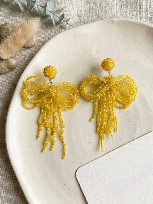 Pookie Bow (Yellow) Handmade Beaded Earrings