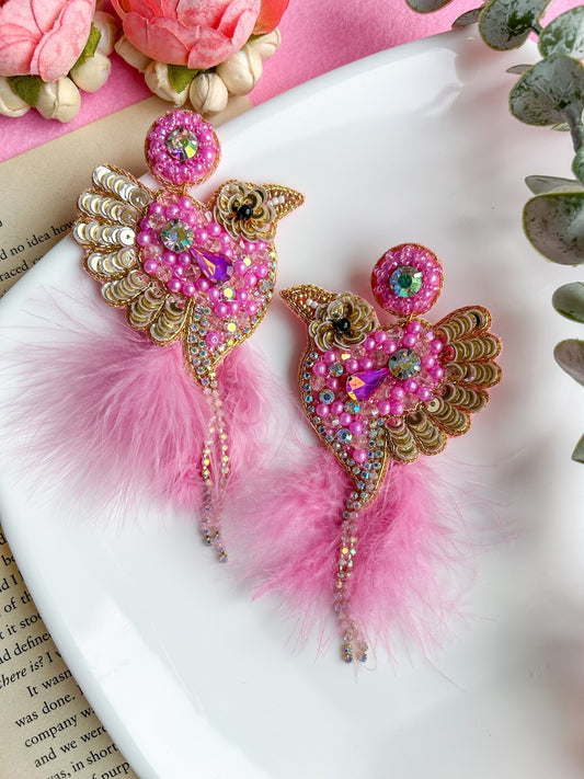 Glamorous Pink Birdies Handmade Beaded Bird Earrings