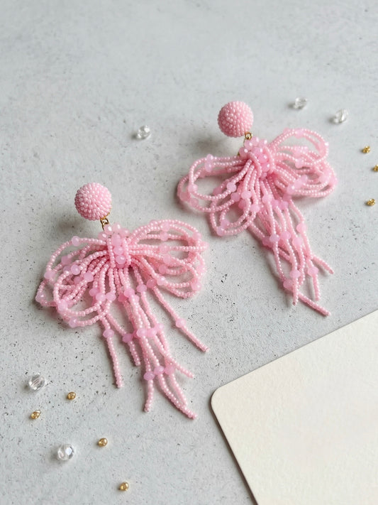 Glam Bow (Pink) Handmade Beaded Earrings
