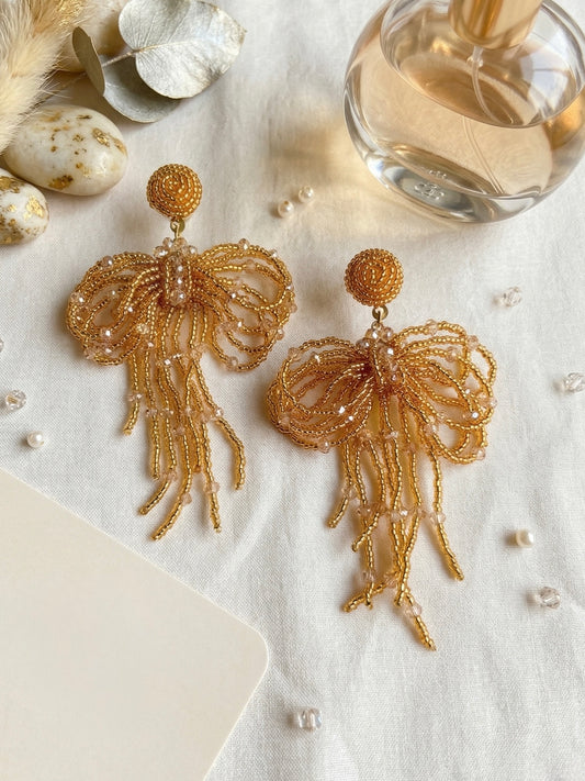 Glam Bow (Gold) Handmade Beaded Earrings