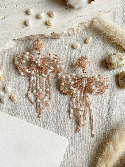 Pookie Bow (Rose Gold) Handmade Beaded Earrings