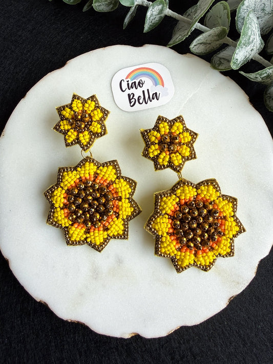 Surajmukhi (Sunflower) Yellow Handmade Beaded Earrings