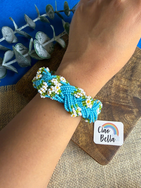 Luxe Flora Light Blue Yellow Handmade Beaded Bracelet