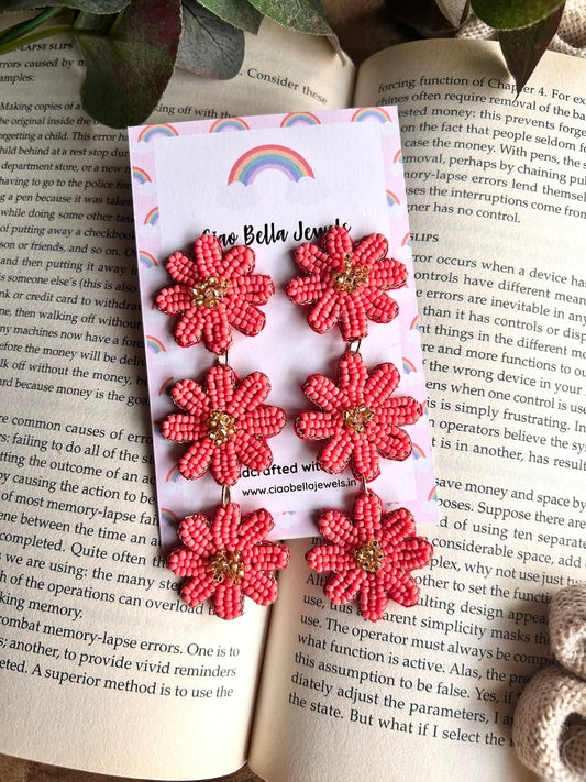 Love Pink Daisy Stud Handmade Beaded Flower Earrings