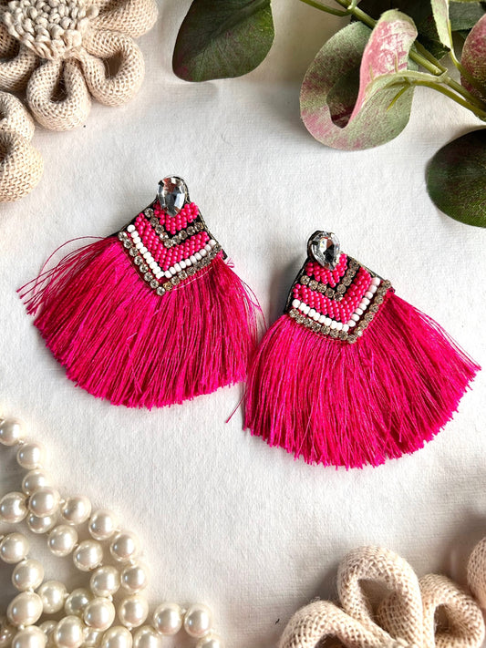 Boho Peacock Feather Handmade Beaded Tassel Bird Earrings