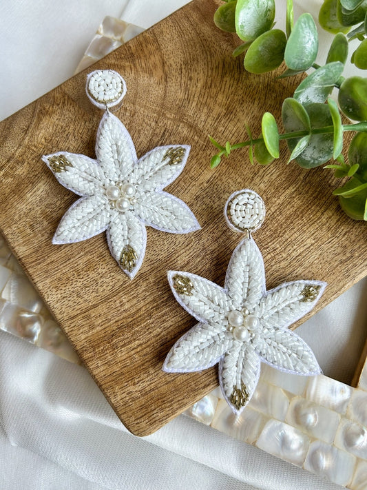 Turquoise Sun-Kissed Handmade Beaded Flower Earrings