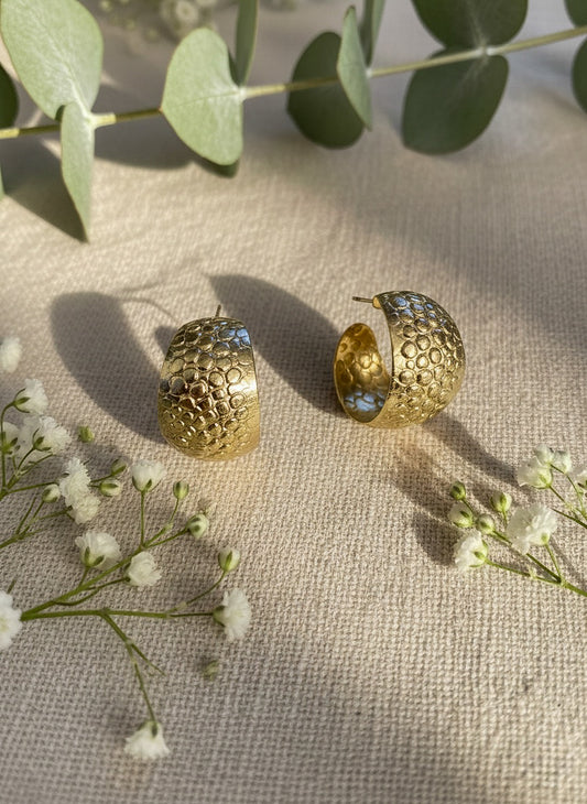 Textured Hoop Handmade Brass Earrings