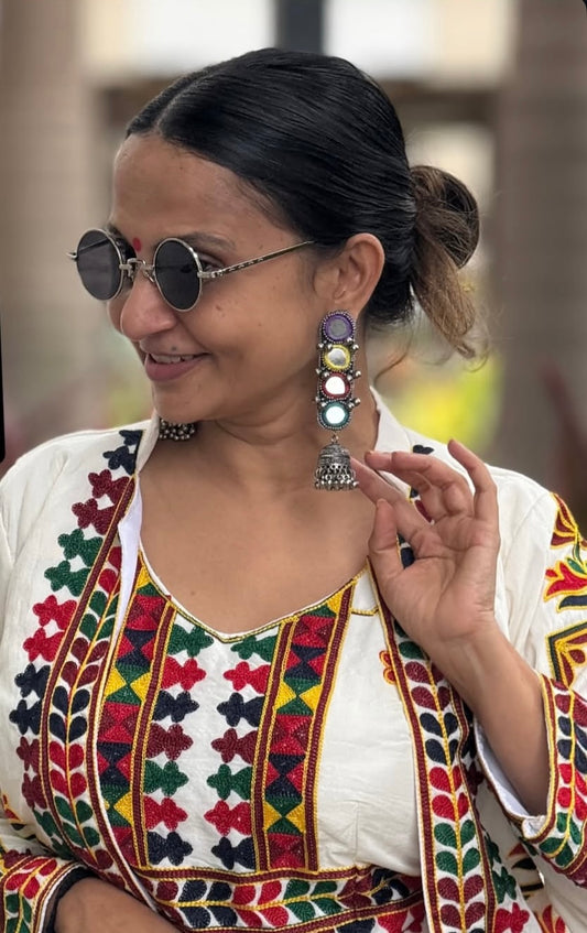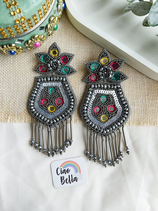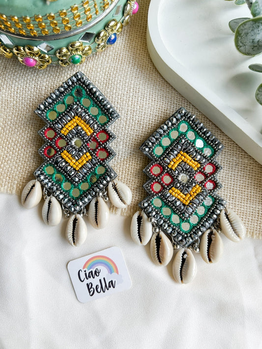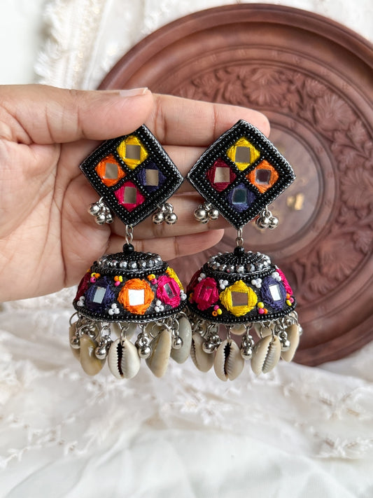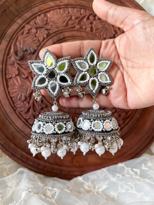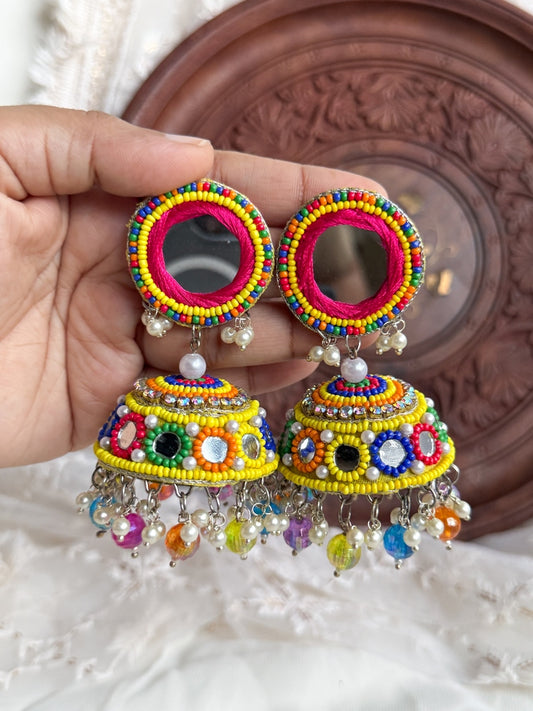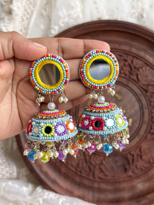 Rangili Mirror Handmade Beaded Jhumka Earrings