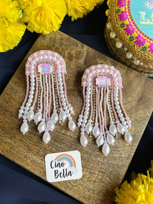 Chandni Drops Pink Handmade Beaded Tassel Earrings