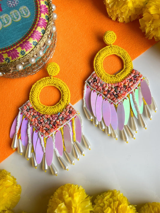 Zehra Yellow Handmade Beaded Tassel Earrings
