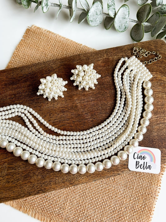 Ruhani Pearl Handmade Necklace + Earrings Set