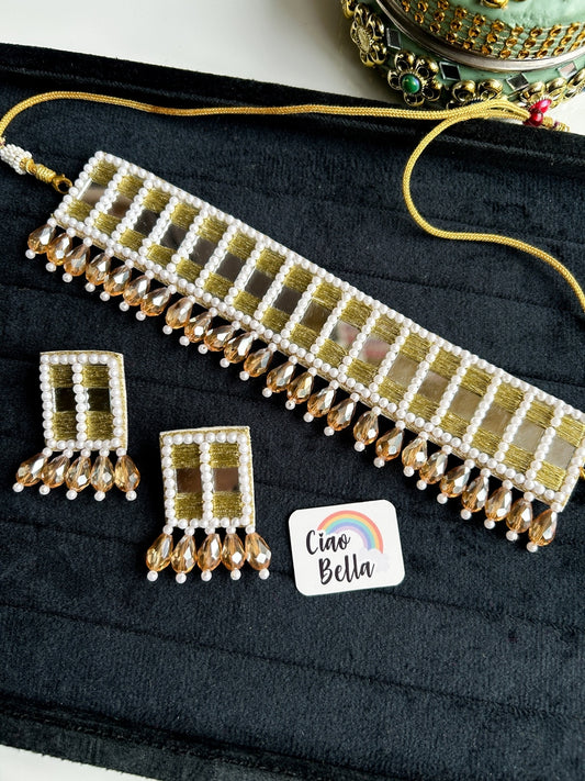 Naaz Mirror Handmade Beaded Necklace & Earrings Set