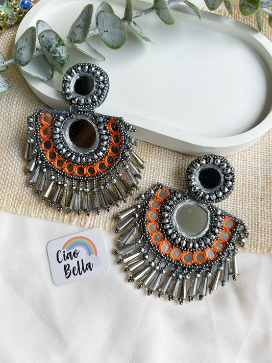 Chandrika Mirror Orange Handmade Beaded Earrings
