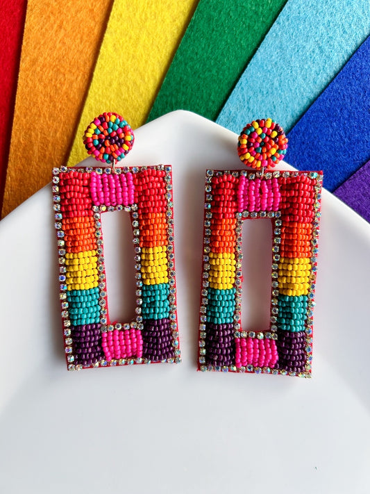 Vibrant Rainbow Drop Handmade Beaded Earrings